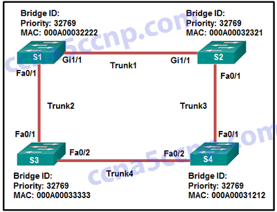 Refer to the exhibit. Which trunk link will not forward any traffic after the root bridge election process is complete?