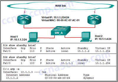 the virtual IP address and the virtual MAC address for the HSRP group 1