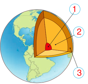Los nombres correctos de las capas de la Tierra señaladas en la imagen son: