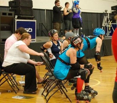 Si una patinadora se levanta antes de que se cumplan los 10 segundos que le quedan por cumplir su penalti, puede ingresar en la pista cuando se terminen.