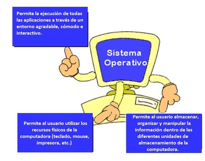 Acceso a los programas, almacenamiento de archivos, encendido del sistema, apagado del sistema.