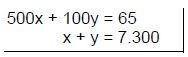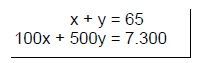 Perico ahorró dinero juntando en total 65 monedas entre monedas de $ 100 y de $ 500. Si en total ahorró $ 7.300, ¿cuál de los siguientes sistemas permite encontrar la cantidad (y) de monedas de $ 500 que ahorró, sabiendo que x es la cantidad de monedas de $ 100?