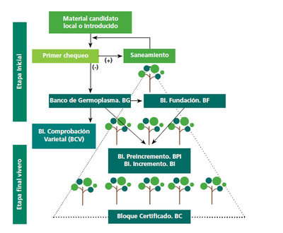 a chequeos sanitarios (indexajes, PCR, termoterapia, etcétera) para declararlo como material libre de enfermedades y plagas e introducirlo al sistema de certificación.
