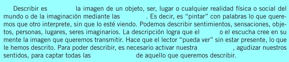 La descripción también sirve para darle una idea al lector de cómo son los personajes, sin verlos, pero imaginándolos a través de las palabras del autor.