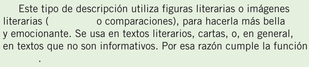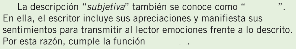 La descripción “subjetiva”, incluye las [blank_start]apreciaciones[blank_end] del escritor.