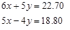 Sí 6 kilos de café y 5 kilos de azúcar costaron $ 22.70, y 5 kilos de café y 4 kilos de azúcar ( a los mismos precios ) costaron $ 18.80. Encuentra las ecuaciones para calcular el precio del café y la azúcar.