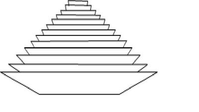 Se colocan estratos extendidos de diferente tamaño sobrepuestos verticalmente. Al colocar 13 estratos,¿qué vista tiene la figura si se observa desde la parte superior?