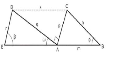 45. Se requiere diseñar dos lienzos de aluminio para el mantenimiento de un helicóptero, de forma triangular diferentes pero de la misma altura, que tienen los vértices C y D. Si las magnitudes de los ángulos teta, omega , beta, m, n y r son conocidos y diferentes entre si. ¿Cuál seria el orden en que deben emplearse los siguientes conceptos matemáticos para determinar la altura de los triángulos. Los conceptos se pueden utilizar más de una vez.