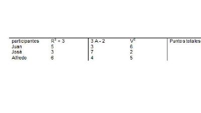 28. Juan, José y Alfredo van a la feria a jugar aros de colores (verde, azul y rojo), si después de 8 lanzamientos de cada aro, la siguiente tabla muestra el número de aros ensartados. ¿Cuál de ellos obtuvo la puntuación más alta?