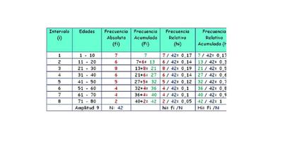 40. En un centro comercial, se consultó la edad a todas las personas que entraban entre las 12:00 h y 12:30 h. Los resultados obtenidos fueron los siguientes: Ver imagen