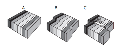 En la corteza terrestre las rocas están continuamente en interacción. Las figuras representan una