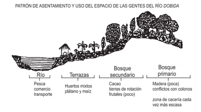 La figura representa los diferentes usos del suelo que la comunidad Embera ha establecido en su