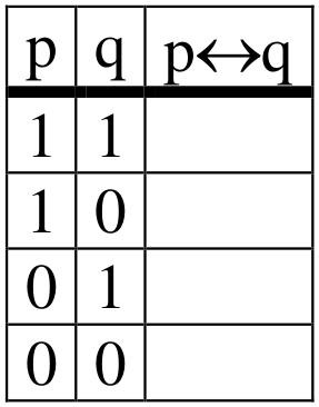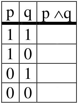 Completa la tabla de verdad con los valores 1 (verdadero) y 0 (falso) Las últimas casillas su valor es 0 (falso)