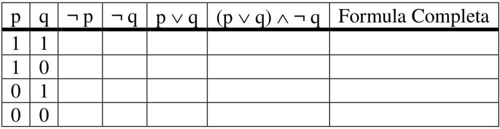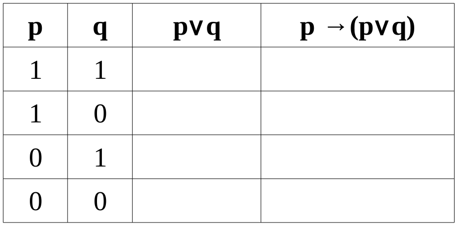 Completa la siguiente tabla de verdad de la fórmula: p →(pvq)