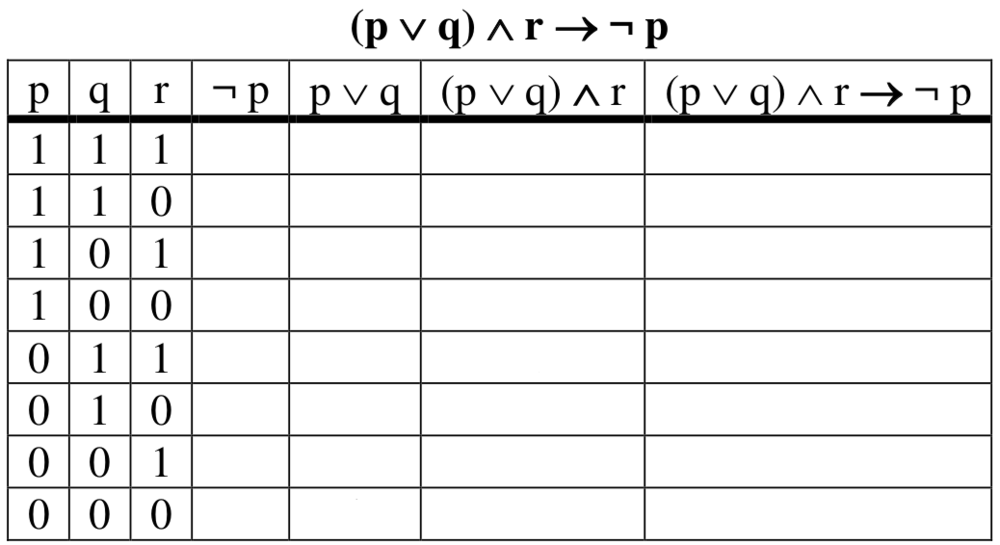 La fórmula [(p v q) ^ r → ¬ p] es una indeterminación