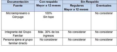Jorge es tallerista, produce indumentaria femenina en el taller que posee en su propio hogar en la Villa 1-11-14. Vive junto a su mujer Norma, quien es empleada de limpieza en una empresa del Estado desde Marzo del año pasado y a sus 2 hijos mayores de edad, quienes hace 4 años venden indumentaria deportiva en un puesto de la Salada.  Al momento de que el ejecutivo realiza la TER, se da cuenta de que el cliente no cubre la cuota en varios meses, y por tal motivo necesita buscar qué otros ingresos puede tener el cliente. Teniendo en cuenta la normativa, cual(es) consejo(s) daría al ejecutivo?.
