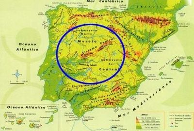La Meseta se divide en dos zonas: la Submeseta Norte, recorrida por el río Duero; y la Submeseta Sur, recorrida por los ríos Tajo y Guadiana. ¿Qué sistema montañoso la divide?