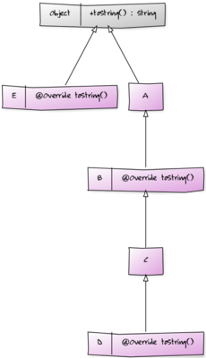 Dado este diagrama de clases donde el método toString() se sobrescribe en algunas subclases de Object, si tenemos el siguiente objeto: