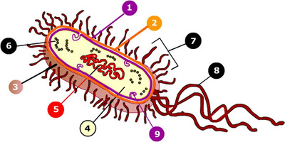 Una célula procarionte se considera más primitiva y cuyo ADN no se encuentra encerrado en una membrana, sin embargo si presenta material genético en una zona llamada: (señalada por el numero 5)
