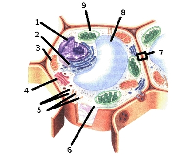 En una célula vegetal, son los organelos en donde se lleva a cabo la fotosíntesis ¿Qué numero es el que señala estos organelos?