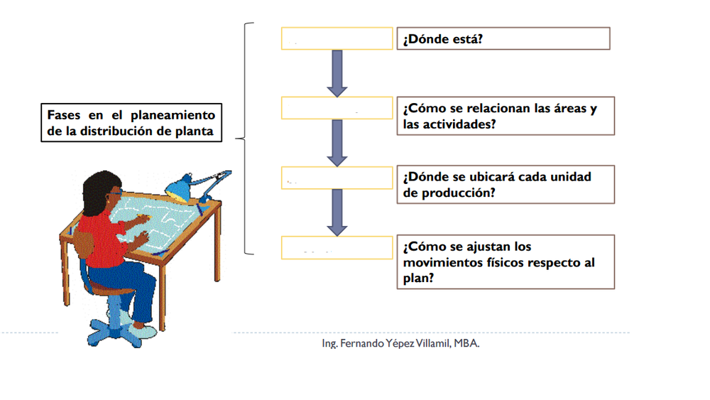 Rellene el espacio respectivo con la fase en el planeamientos de la distribución de planta
