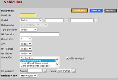 ¿Si queremos saber qué coches del Grupo E, están libres disponibles en Mallorca para alquilar hasta la fecha marcada, es correcto lo que aparece en la captura?