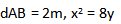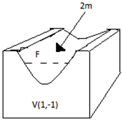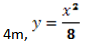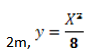 Se instala un canal en forma parabólica con el fin de que fluya el agua de la lluvia, el vértice y la longitud del lado recto se indican en la figura.