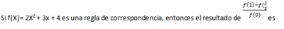 A partir de la siguiente función f(x)= 2x2 – 3X, ¿Cuál es el valor de la siguiente operación?