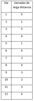 María registra en la siguiente tabla el número de llamadas de larga distancia llevadas a cabo por los empleados de una empresa en los últimos 12 días.