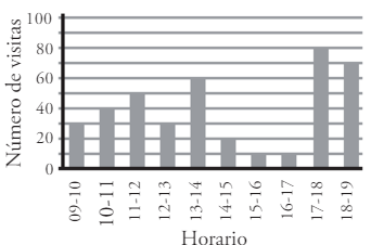 ¿Cuántas visitas se tuvieron entre las 12:00 y las 3:00 de la tarde?