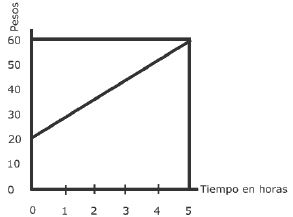 La siguiente grafica relacionada el precio a pagar en pesos por el número de horas en un estacionamiento publico.