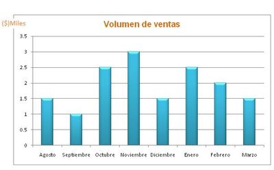 En la siguiente grafica se muestra el volumen de ventas, en miles de pesos, de una tienda de aparatos electrónicos, en los últimos 8 meses: