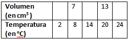 Si el volumen aumenta en forma lineal al incrementar la temperatura, ¿Cuáles son los valores faltantes?
