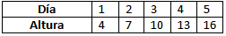 El crecimiento en centímetros de una planta de maíz se muestra en la siguiente tabla: