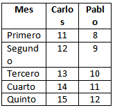 Carlos y Pablo pesaban 10 Kg. y 7 Kg., respectivamente. El peso de ambos ha venido aumentando 1 Kg. cada mes durante 5 meses. ¿Cuál es la representación algebraica del incremento de peso para Carlos (Cn) y para Pablo (Pn), dada la siguiente tabla con n=1, 2, 3, 4, 5?