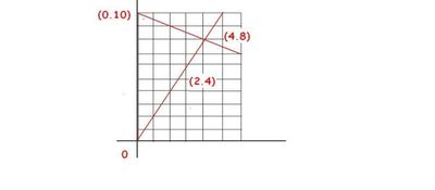 De acuerdo con los datos de la gráfica, y considerando que c(x) representa el numero de computadores disponibles, d(x) el número de unidades de almacenamiento en uso y x el numero de alumnos que hacen uso de las 10 computadoras, ¿Cuál es la expresión algebraica que representa el punto de intersección entre las funciones?