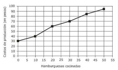 El dueño de un puesto de hamburguesas registro sus costos de acuerdo con las hamburguesas que cocina, con ello obtuvo la siguiente grafica.