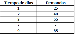 De acuerdo con los valores registrados en la tabla, el número de demandas correspondientes a 7 días es: