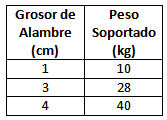 Un resorte soporta un peso (f(x)) de acuerdo con el grosor (x) del alambre con que es construido. La siguiente tabla muestra los ejemplos de algunos de ellos.