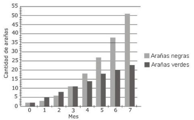 Identifique la expresión algebraica que representa el comportamiento para las arañas negras y verdes, respectivamente.
