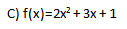 Dada la función f(x) 2x2 + 3x + 6, indique el valor de f (2) – f(-3)