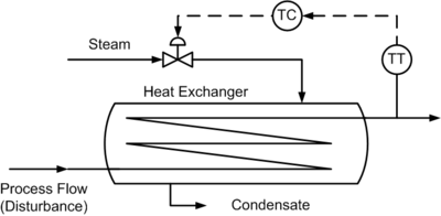 Intercambiador de calor, el objetivo es controlar la temperatura de la corriente fría que sale.