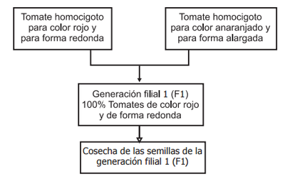 Para aumentar una producción de tomates rojos y redondos, un agricultor decide sembrar semillas de la generación filial 1 (F1) provenientes del siguiente cruce (ver imagen)