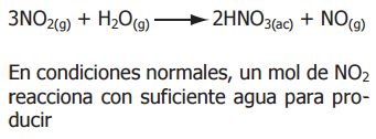 La síntesis industrial del ácido nítrico se representa por la siguiente ecuación: (ver imagen)