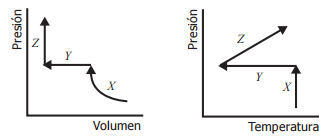 Un gas es sometido a tres procesos identificados con las letras X, Y y Z. Estos procesos son esquematizados en los gráficos