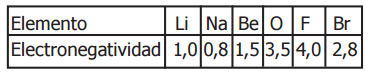 En la tabla se muestran las electronegatividades de algunos elementos (ver imagen)