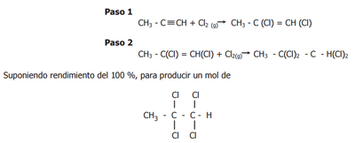 4 moles de 1- propino y 2 moles de cloro gaseoso