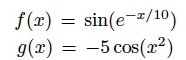 Las funciones f y g mostradas en la imagen, se desea determinar uno de los puntos de cortes de estas dos funciones usando el método de Newton. La solución que se obtiene utilizando como dato inicial x=0,012 con un error del 0,0001