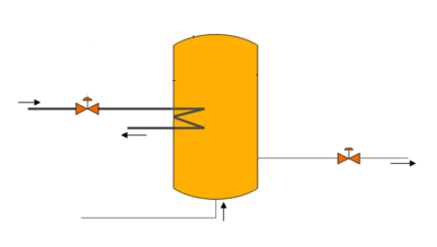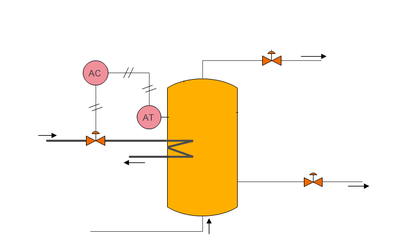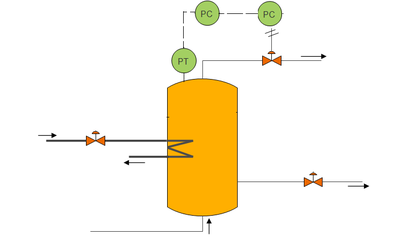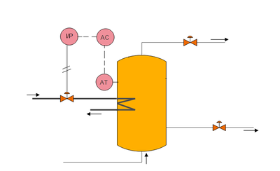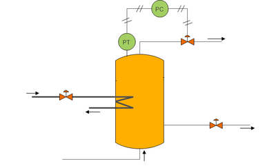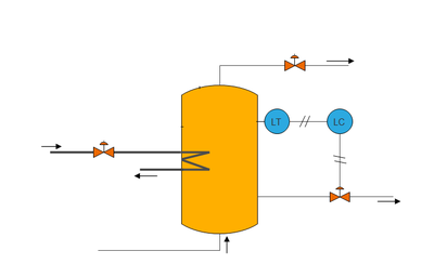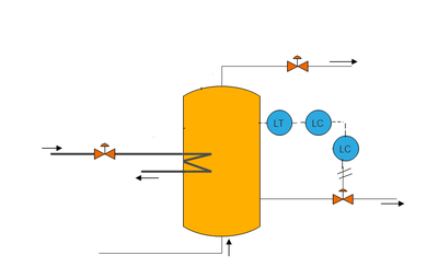 Dibuje los lazos de control Feedback posibles para el siguiente evaporador, teniendo en cuenta que los sensores deben ser neumáticos. Seleccione los lazos de control que considere sean correctos