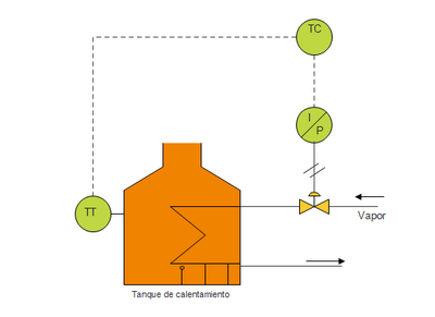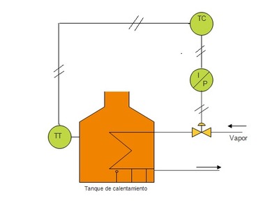 Para el tanque de calentamiento que se ilustra a continuación seleccione el diagrama que muestre el lazo de control feedback correcto para controlar la temperatura.